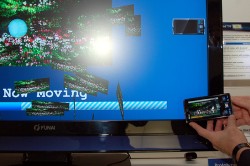 WiFiを使用し、テレビとモバイル間でムービーなどのコンテンツをムーブしたり、メールをテレビとモバイル両方で閲覧したりすることが可能。またショッピングにも大きな利点があると説明する。「テレビには決済機能がないし、モバイルは画面が小さく商品を探しづらい。両機を使うことによって、テレビの大画面で商品を選び決済はモバイルで行うということが可能だ」(同社説明員)