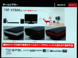 「KDL-40W5」「KDL-46W5」のカラーバリエーション展開にあわせ、BRAVIA本体と一体化装着できるフロントサラウンドシステム「HT-CT500」(関連ニュース)のBPO専用カラーも用意。こちらもシルバー/ブラウン/レッドを用意する。