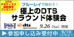 9月26(土)に秋葉原で開催するPhie-web主催、読者限定イベント「ブルーレイで味わう!極上のDTSサラウンド体験会」の参加申し込みが本日16時で締め切りとなります。
