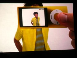 その後、iPod nanoが新たに搭載したFMラジオチューナー機能や歩数計、カラーバリエーションなどを紹介し、iPod nanoの新作テレビCMも披露。ここでも大々的にフィーチャーされていたのは動画撮影機能で、この機能にかける同社の強い意気込みを感じさせた。