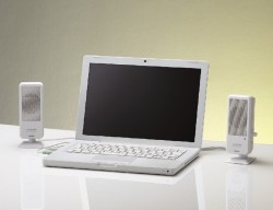 幅57×奥行70mmのコンパクトサイズのバスレフ型フルレンジスピーカー。直径50.8mmのスピーカーユニットを搭載し、インピーダンス8Ω、周波数特性120Hz〜20kHz、実用最大出力0.25W+0.25Wを実現する。USB Aタイプを装備しており、PCなどと接続が可能。電源もUSBより給電する。