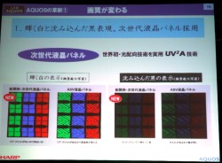 シャープ(株)は、光で配向する液晶パネル新技術「UV2A」を採用した新パネルを搭載し、バックライトに白色LEDを搭載した液晶テレビ“AQUOS”を11月10日から順次発売すると発表。本日新製品発表会を開催した。