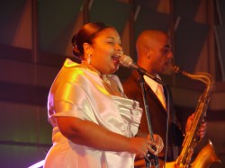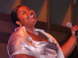 ティファニーはステージに上がると、「ムーン・リヴァー」「ス・ワンダフル」「ナイト・アンド・デイ」などのスタンダードナンバーを中心に、美しい歌声を次々に披露。バックをもりたてる各プレーヤーとの息もぴったりと合い、約1時間の演奏はあっという間に終わった。