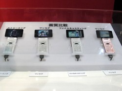 ドコモのブースでは、BeeTVを始めとする「ドコモ動画」サービスの紹介とともに、アナログ停波後の空いた帯域を利用したマルチメディア放送で行う「ファイルキャスティングサービス」と「高品質ストリーミングサービス」という2点の新サービスを参考出展している。