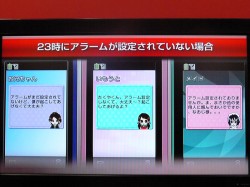 こうしたスペシャルメッセージはキャラクターごとに設定が可能で、「お兄ちゃん」キャラを使っている女性ユーザーが「彼氏が欲しい」といったメールを送るとキャラクターがびっくりするといった反応も見られる。同サービスについては仕様を開発ソフトメーカー各社に公開済みであるため、「近いうちに実用化できるのではないか」(同社説明員)とのことだった。