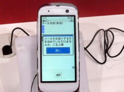 そのほかで一風変わったところでは、キャラクターが画面上を動き回るウィジェット「マチキャラ」に関する参考展示も注目を集めていた。同ウィジェットは、不在着信お知らせなどの表示がキャラクターの口調になったり、メール送信後にキャラクターが反応したりするというもの。ブースには「お兄ちゃん」「いもうと」「メイド」という3人のキャラクターが設定されたデモ端末が用意されている。