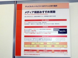 KDDIでは携帯電話とテレビを連動させる「FMBCスマートプラットフォーム」(関連ニュース)を大々的にフィーチャー。同プラットフォームを利用して行える新たな視聴スタイルの提案を行っている。