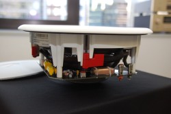 本機は同社初のエンクロージャーレス筐体採用の天井埋め込み型スピーカー。独自の“Stereo Everywhere”技術を採用し、どのリスニングエリアでも均一なステレオ再生音場を実現した点が特徴となる。