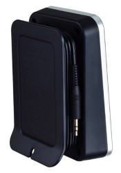 57mm口径のモノラルスピーカーを内蔵。実用最大出力は160mW。3.5mmステレオミニプラグから入力したテレビの音声を、手元ではっきりと聴くことができる。ケーブルは約5mで、好みの長さに調節して使えるコード巻き取り設計を採用。使用しないときにはコードをすべて巻き取ることもできる。