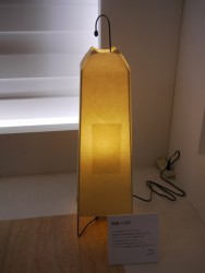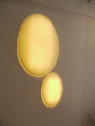 シャープは今年、LED電球に参入した。先ほど紹介したLED AQUOSコーナーの天井には、シャープ製のLED電球も設置されており、電球色から昼白色まで、光の色を段階的に変えられる「調色機能」が体験できる。さらに、AQUOSのデザインを一貫して手掛けている喜多俊之氏による、LEDを使用した照明も2種類置かれている。残念ながら市販品ではないが、和紙を使用した照明で、LEDという言葉が持つ近未来的なイメージを覆す、柔らかでオーガニックなデザインとなっている。