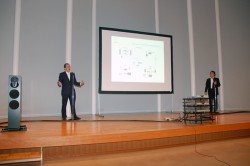 「あらゆるパッケージソフトを超えたハイビット・ハイサンプリングの世界〜高音質音楽配信ソースの聴き比べ〜」と題されたセミナーには、ネットワークオーディオプレーヤーの開拓者“DSシリーズ”を世に送り出した英リン・プロダクツのギラード・ティーフェンブルン社長や、CDを超えるクオリティの音源を配信しているクリプトンHQMの事業責任者・樋泉史彦氏が登場。ホール前には開始前から多くの人が集まり、約200人収容できるホールは急遽追加椅子を用意したほどの大盛況だった。