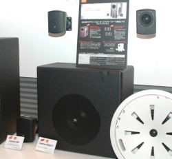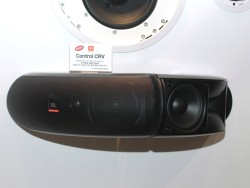 JBL PROFESSIONAL製品は、商業施設やライブ会場などで使用される業務用スピーカーが多く揃う。新製品のControl 50シリーズは、小型のサテライトスピーカーとサブウーファーで構成されるサウンドシステム。20cmのドライバーを内蔵するサテライトスピーカーは2ch、または4chの組み合わせにも対応する。サテライトとサブウーファーを分けたことで、商業空間のビジュアルを損なわずに高音質なサウンドが提供可能になったとしている。また11月5日に発売されたばかりの2ウェイ・フルレンジスピーカー「Control CRV」も展示されている。本体はユニークな形状をしており、平面の壁や柱のコーナーなどに設置することができる。