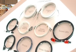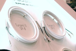 オーディオ用では、トップモデル「TUNAMI NIGO」をベースにCNCマシニングにより削り出された高精度・高強度ケーブルガイドキャップを装着したオーディオケーブル「TUNAMI II SP-Y/SP-B」をはじめとする多数の製品が展示されている。