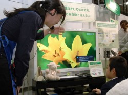 ”を駆動させたり、社会科見学などで多数来場している小学生などから希望者を募り、実際に果物からブドウ糖を取り出して電気を作る実験デモを大々的に行っている。