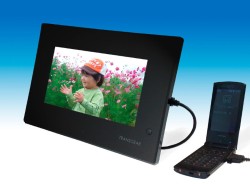 PCや携帯電話からフォトサーバーにアップロードした写真データを、本機に携帯電話を接続することで、ダウンロードできるデジタルフォトフレーム。パネルはLEDバックライト採用の7インチ液晶パネルを採用。解像度は800×480。スピーカーを内蔵しており、静止画のほかに、音楽ファイル(MP3/WMA)や動画ファイル(Motion-JPEG)の再生にも対応。記録媒体は、1GBの内蔵メモリーに加えSD、MMC、MSの外部メモリーも使用できる。