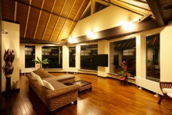 北海道を拠点に活躍する新進気鋭のショップ、DEPT SAPPOROが手がけたリビングシアターです。バリ風のインテリアをコンセプトにした住まいのなかに、ホームシアターの機能を絶妙に調和させた実例です。梁の造作を生かしてスクリーンボックスを隠蔽したり、スピーカーを塗装して天井に埋め込むなど、空間のイメージを損ねないために創意工夫に富んだインストールがなされています。