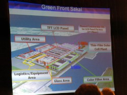 そのほか、「Energy Inovation」ではグリーンフロント堺のようなThin Film PV生産拠点を世界中に作りたいという考えなどを発表。東海大学との産学協同プロジェクトのソーラーカーなども紹介された。