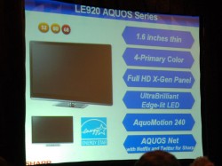 ラインナップには240Hz駆動技術「AquoMotion」を搭載した「LE920」と、120Hz駆動の「LE820」「LE810」を用意。サイズ展開は「LE920」が68/60/52インチの3種類で、「LE820/LE810」が60/52/46/40インチの4種類。参考までに、LE820UNの北米での販売価格を紹介すると、60インチが約4,000ドル、52インチが約3,000ドル、46インチが約2,400ドル、40インチが約2,200ドルとなる。