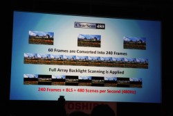 北米版CELL REGZAの最大の特徴といえるのが、3Dコンテンツの再生はもちろん、2Dコンテンツをリアルタイムで3D化し、視聴できることである。もちろん、それを可能にしているのはCELLの持つ高い処理能力だ。また、本機は3D対応を果たすべく240kHz駆動を実現している。3Dの再生規格としては、MPEG4 MVC形式によるBlu-ray 3D、RealD方式等が挙げられていた。視聴に関しては、アクティブシャッター方式の3Dメガネを使用することになる。なお、新パネルとして紹介されていた“KIRA 2 Super Local Diming LED Panel”とは、国内で販売されている55X1に搭載されているLEDパネルの北米における名称であるという。