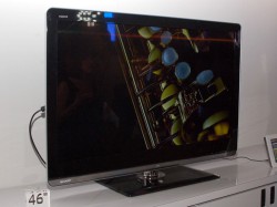 こちらでは、いわゆる“ブルーレイ内蔵AQUOS”のように、3D対応BDプレーヤーを内蔵した3D液晶テレビを参考出展。アクティブシャッター式のメガネを使用するタイプのもので、画面サイズは60インチ。UV2Aパネルを搭載し、3Dに対応させたLEDバックライトシステムも採用している。これらの技術により、明るさやコントラスト比を向上させたのだという。