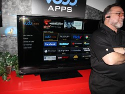 そして、そのほかには同社製テレビが各種インターネットサービスにも対応している点をアピール。VUDUやFlickr、facebookやtwitterなどを端絵とした数多くのサービスに対応可能であることを紹介している。
