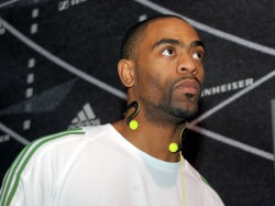 そして、同社ブースには特別ゲストとして陸上のタイソン・ゲイ選手が登場。ネックストラップ型の「PMX 680」を身に付けた彼のサイン会が開かれる一幕も見られた。