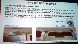 「サテライトスピーカーと言えば従来はぶら下げて設置するものが多かったが、TS-STH1000は薄型のため設置の自由度が高い。従来では対応できなかった、ミニバンタイプのCピラーへも設置できる。自由に設置場所を選べるため、好みの音を再生するためにも役立つ」と語った。