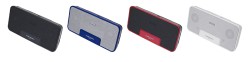 【SPEC】●型式:アンプ内蔵スピーカーシステム ●スピーカーユニット:φ32mm/フルレンジ×2 ●最大出力:1.5W+1.5W ●入力インピーダンス:1kΩ ●電源:DC6V 単3形アルカリ乾電池×4(別売) ●外形寸法:200W×95H×38Dmm ●質量:約240g