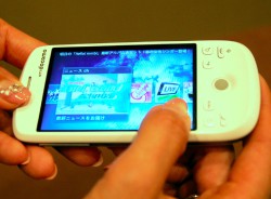 本日のデモでは端末にNTTドコモのAndroid携帯電話「HT-03A」を使用。「HT-03A」が搭載している加速度・傾き・地軸センサーの特長を利用し、端末自体を傾けたり振ったりすることでメニューやチャンネルが切り替わる直感的なインターフェースが採用されている。