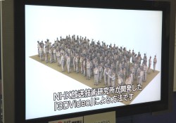 15年前の阪神・淡路大震災の映像を3D上映するNHKメディアテクノロジーによる参考出展は多くの人でにぎわいをみせていた。使用するディスプレイは、走査線毎に正反対の特性を持つ偏光フィルターをディスプレイに貼付けることで小型・軽量化を実現した独自の3D対応の液晶ディスプレイ。偏光メガネを装着して視聴する。