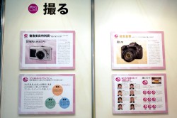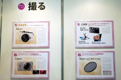 会場の「入口A」を入ってすぐのところ、主催者関連ブースの一番扉側に「デジタルカメラグランプリ」ブースを設け、カメラやディスプレイ、記録メディアや編集ソフトなどの注目製品をトータルでご紹介しています。