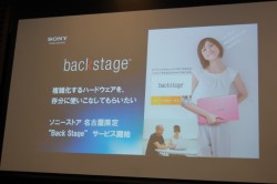 家庭内のようなゆったりと落ち着いた体験ができる展示でブラビア、ブルーレイなどの使い方、ホームネットワート等の体験ができる。「バックステージ」サービスとして、セットアップカウンターや修理などに対応するご相談カウンター、セミナーレッスンを行うレッスンラウンジを設けている。