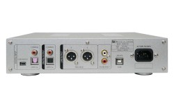 DAC部には192kHz/32bitまで対応するTI製の「PCM1795」を搭載。出力端子はXLR(ITT Cannon製)×2、RCA×2、光デジタル、同軸デジタル、USB端子(ミニBタイプ)を用意している。USBからの信号もS/PDIFへ変換してデジタル出力することも可能だ。