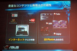 またNVIDIA マーケティング本部のシニアマネージャー・中村かおり氏は「独自に調査をおこなったところ、8割の方が映画やゲームなどのコンテンツを"自宅で、3Dで楽しみたい”と答えた。"自宅で3Dを見たくない"と答えた中にはわからないことを理由に挙げている方がいたが、『G51Jx 3D』のように1台揃えれば3Dが楽しめる製品はうってつけ」とASUSの新製品をアピール。さらに「3D普及のためには、さまざまな機器やコンテンツとつながった"エコシステム"を拡げていくことが必要だと考えている。今後色々なメーカーと協業していきたい」とビジョンを語った。