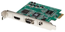 PCI-Expressインターフェースを採用し、HDMIとD端子を搭載したビデオキャプチャーカード。最大1,920x1,080i入力に対応し、HDカメラなどの映像をパソコンにフルHDのクオリティのまま、表示、取り込むことができる。対応OSはWindows 7(32Bit・64Bit)/Vista(32Bit・64Bit)/XP(SP2以降)。