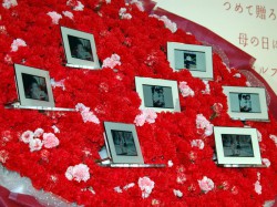そしてその後、司会に紹介されて小林さんがステージに登場。1,000本のカーネーションで作ったという大きな花束の前でトークを行った。