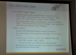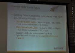 3Dやイーサーネット対応など、あらたな機能を採り入れて進化したHDMIの最新ガイドラインと、ケーブル製品を対象としたロゴプログラムに関する説明も行われた。