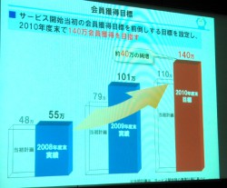 サービスは2008年3月末にスタートし、2010年3月末時点で会員数は101万人を達成した。発表会に出席した同社代表取締役社長 坂東浩二氏は、「この2年間は基本サービスを固めることに力を注いだ」と説明。「会員数は100万人を突破し、顧客基盤を固めるという目標を達成することができた。さらにIT社会における優れた製品・サービスを表彰する『MM総研大賞2009』において最優秀賞を受賞するなど、顧客満足度調査でも高い評価をいただき、ブランド確立も実現することができた」とその成果を挙げる。