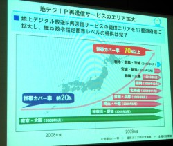 地デジIP再送信サービスの世帯カバー率は2008年5月の約20%から約70%へ拡大。現在17都道府県で提供している。