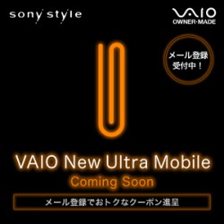 ティザー広告には「VAIO New Ultra Mobile」「Coming Soon」の文字が記されており、モバイル用途の新製品がまもなく発表されることを告知。