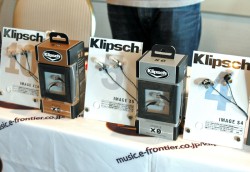 KLIPSCH(クリプシュ)のカナル型イヤホンを扱うイーフロンティアのブースでは、“Image”シリーズのラインナップを試聴することができる。人気モデル「Image X10」にiPhone/iPod互換のスリーボタン・リモコンマイクを搭載した「Image X10i」も展示している。同社担当者によると「KLIPSCHイヤホンの売り上げは好調で、特にX10、X5、S4が売れ筋。日本でマイク付きモデルはあまり売れないと言われていたが、iPhone 3GSの普及で、S4iも同じくらい売れるようになってきた」という。