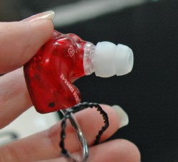 Ultimate Earsブランドを扱うロジクールのブースには、常時20人前後の来場者が行列をつくっていた。彼らの目当てはUEが本国で発売を開始した、片チャンネルあたり6基のバランスド・アーマチュアドライバーを搭載したカスタムイヤーモニター最上位モデル「Ultimate Ears 18 Pro Custom Monitor(UE 18 Pro)」(関連ニュース)の試聴だ。「UE 18 Pro」の6個のドライバーは、それぞれユーザーの耳の形状にあわせて個別にチューニングしたもの。会場では特別に制作したジェネリックバージョンを試聴することができた。