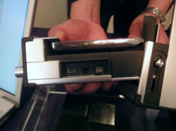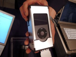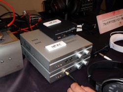 フォステクスは、現在開発中というiPod/iPhone用ヘッドホンアンプを参考出展。ドック端子を備え、ケースを閉じるとiPod/iPhoneと一体化できるものと、USB端子でiPod/iPhoneと接続するものの2種類が展示され、どちらか片方を商品化するという。なお、ヘッドホンアンプとiPod/iPhoneはデジタル接続を採用している。ちなみに同社説明員によると、圧倒的に人気が高いのは一体化するドッキングタイプとのことだが、「ドック端子によるiPodデジタル接続はアップルの認証が下りにくい。認証が取れなければUSB接続にせざるを得ない」という。