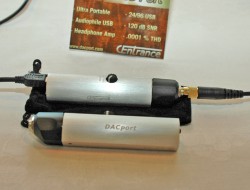 米シカゴのブランドCEntranceは24bit/96kHz対応のUSBヘッドホンアンプ「DACport」を出展。400ドルで販売しており、日本では同社直販サイト(英語)で購入できる。口径2.5cm、長さ11.4cmというコンパクトな筐体にClass Aのヘッドホンアンプを搭載。USBポートとヘッドホンジャックを備えたシンプルな設計だ。電源はUSBバスパワー。Windows、Mac、Linuxに対応する。