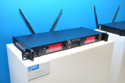 2000シリーズにはワイヤレスモニタリングシステムもラインナップする。デュアルチャンネルの送信機「SR 2050 IEM」には5バンドのグラフィックEQを内蔵、受信機「EK 2000IEM」はシングルアンテナ仕様ではデットポイントになっていた使用環境の中、イヤホンケーブルを第2アンテナとして利用する「アダプティブ・ダイバシティ方式」を採用することで使用感度をアップさせている。付属のカナル型イヤホン「IE 4」との組み合わせてハイクオリティなモニター環境を実現する。このほか1台で最大8chのワイヤレスモニタリングシステムのアンテナ出力を混合できるアクティブアンテナ混合器「AC 3200」もラインナップに加わる。