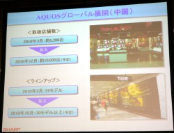 エコポイント効果の継続が見込まれる国内でも大幅な販売増を狙うほか、中国市場では前年比2倍以上の販売を計画。そのために中国での取り扱い店舗数を拡大し、「2010年3月の約5,200店から今年12月には10,000店舗にする」という計画も明らかにした。