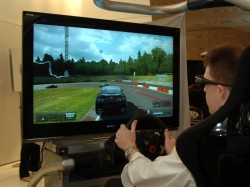 「dot 3D Cafe」には、現在全国をキャラバン中の3D BRAVIA体験イベント(関連ニュース)と同様のブースのほか、ソニー・コンピュータエンタテインメントが3D版の「グランツーリスモ5」を参考展示。PS3と「KDL-40LX900」で実際にプレイできるようになっている。