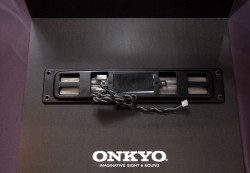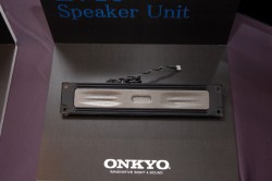 スピーカー振動板の面積は10cmウーファー相当で、素材には軽量かつ高剛性の発泡材を採用。小野氏は「一般的に横長の振動板は周波数特性が暴れる傾向にあるが、この振動板では突起を持った扁平楕円形状を立体成型し、さらに両端を固定することで、振動板の端を固定し、振動板の真ん中を揺らす構造を採っている。これらの工夫により、150Hz〜250Hzの特性の乱れを改善した」と説明する。