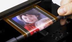 ソニーは、極めて柔軟性が高く、ペンなどの細い棒状に巻き取ることが可能な厚さ80μm、精細度121ppiの4.1V型有機TFT駆動フルカラー有機ELディスプレイを開発した。