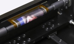 今回試作に成功したのは、曲率半径4mmの太さに巻いたり伸ばしたりを繰り返しながらの動画再生が可能な有機ELディスプレイ。一般的なペンほどの太さの棒にディスプレイを巻き取りながら写真や動画を表示することができる。耐久性にも優れ、1,000回の巻き戻しの繰り返し試験において、ディスプレイの表示性能に劣化がないことを確認しているという。現在、同社サイトでは製品の動画も公開されている。